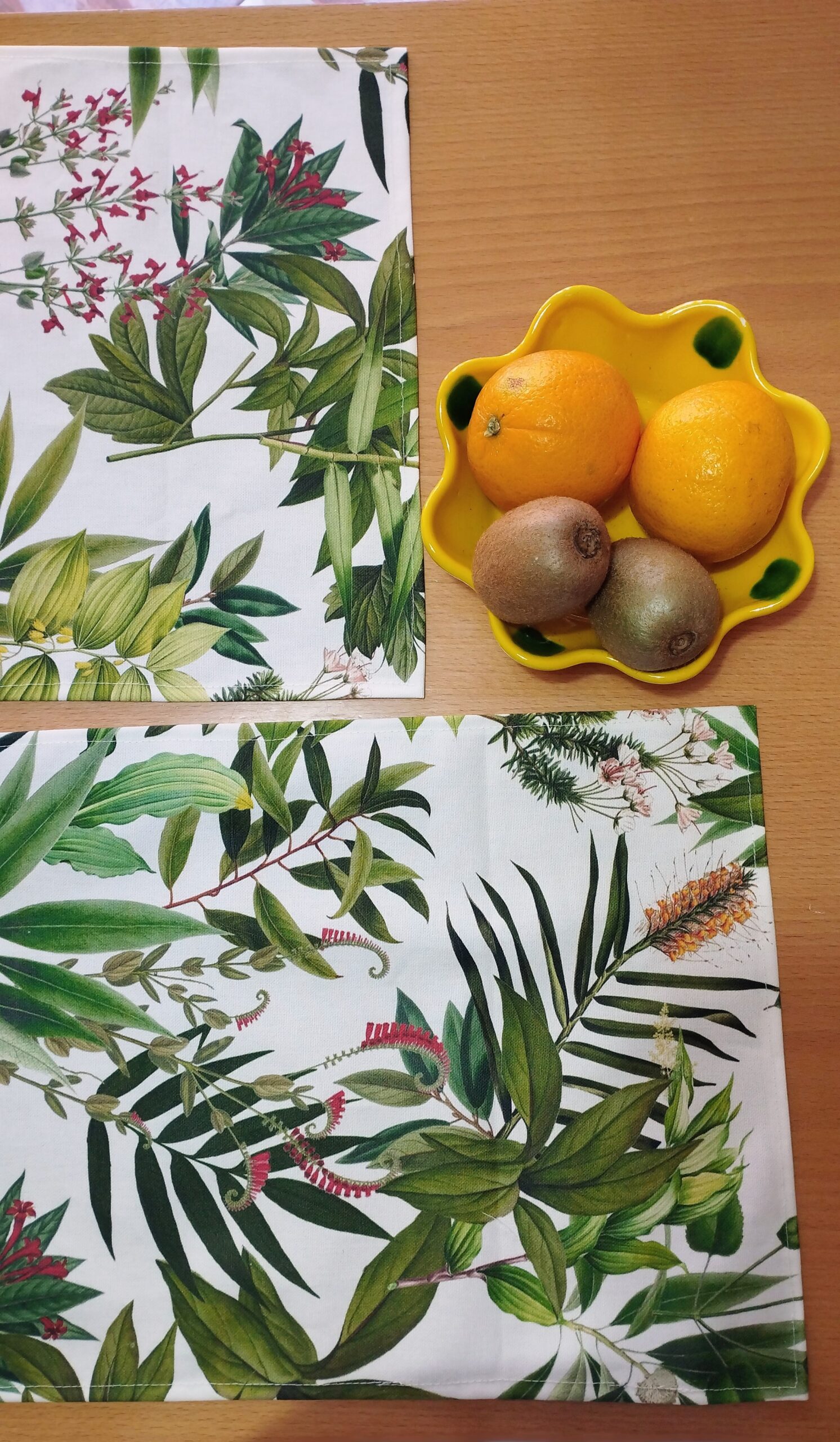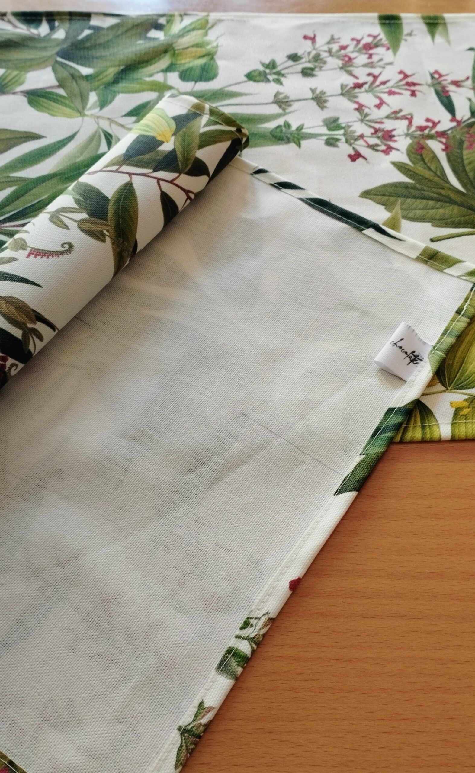 Los individuales resinados CELIA combinan un estampado de inspiración tropical con la funcionalidad de un acabado antimanchas 100% algodon. Su diseño aporta carácter y personalidad a la mesa, mientras que el tratamiento resinado facilita el uso diario sin renunciar al aspecto textil.
