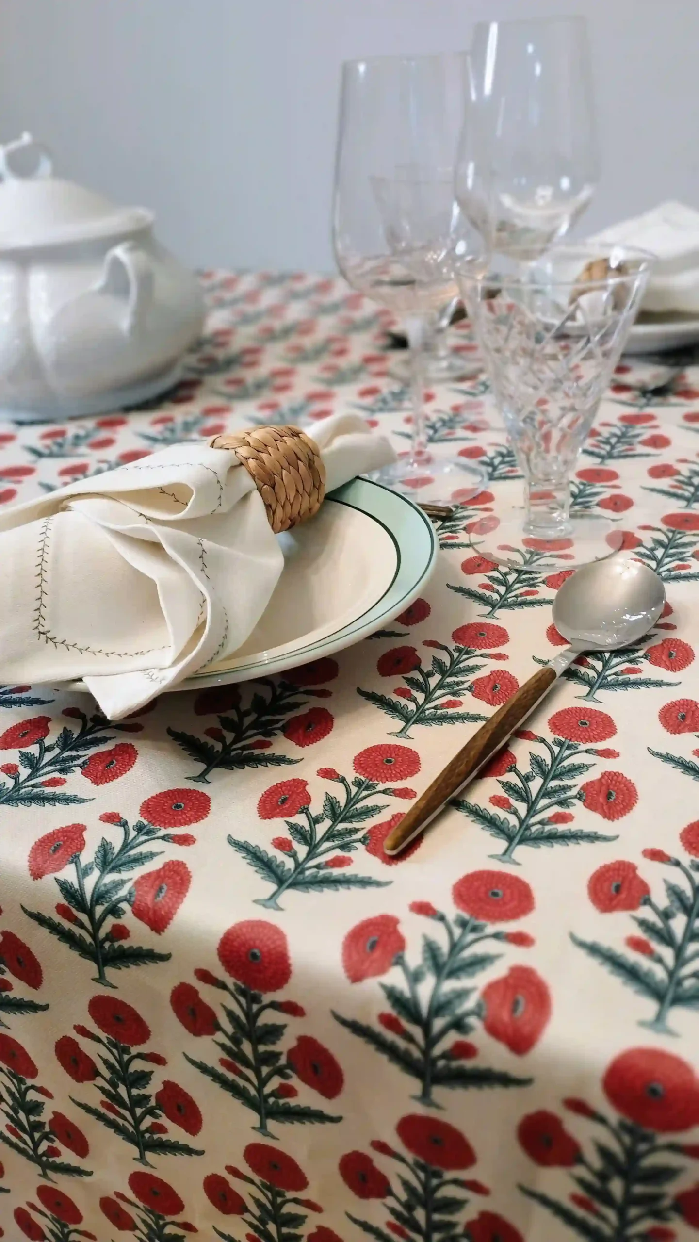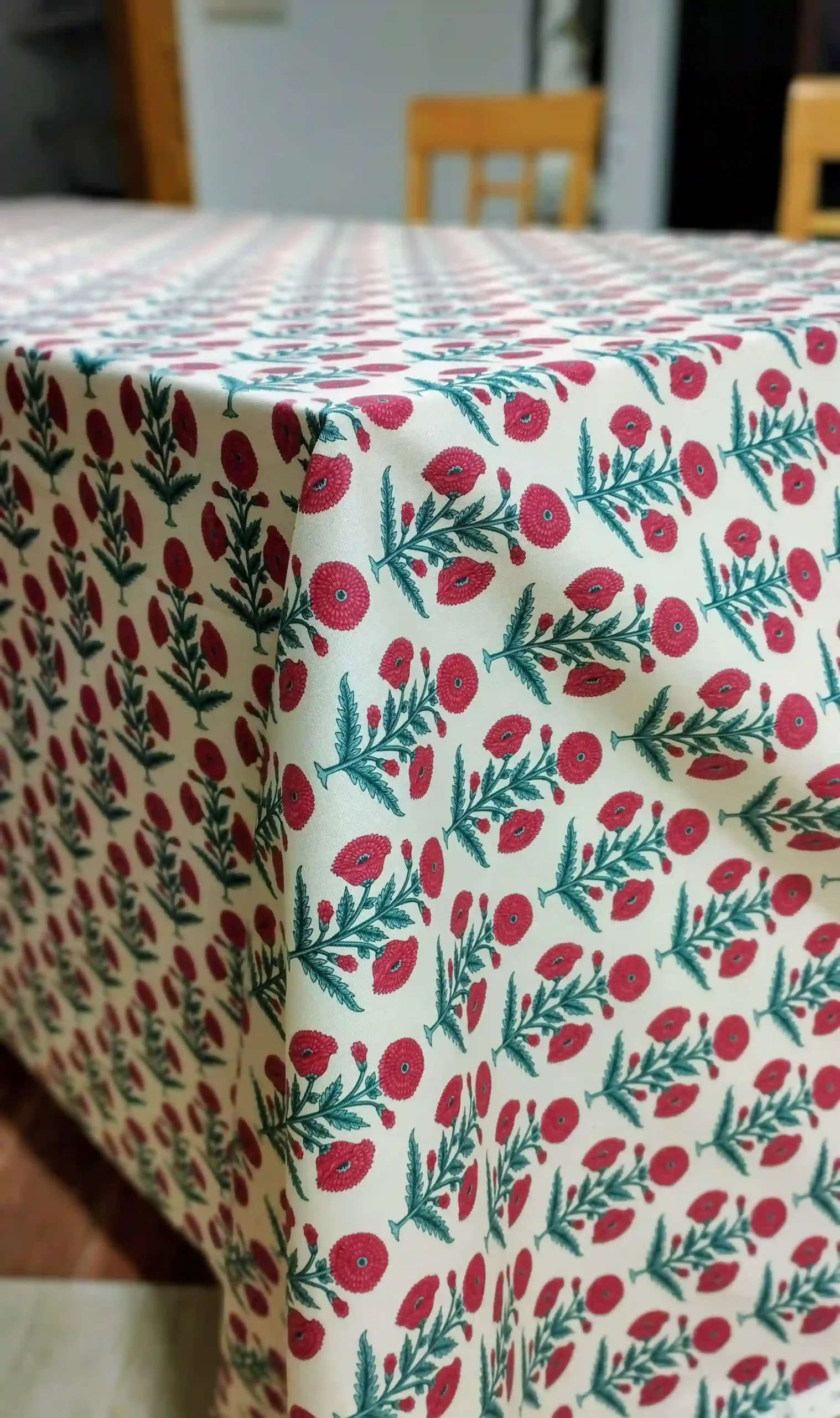 El diseño Jaipur y el acabado resinado hacen de este mantel una pieza tan bonita como fácil de usar.