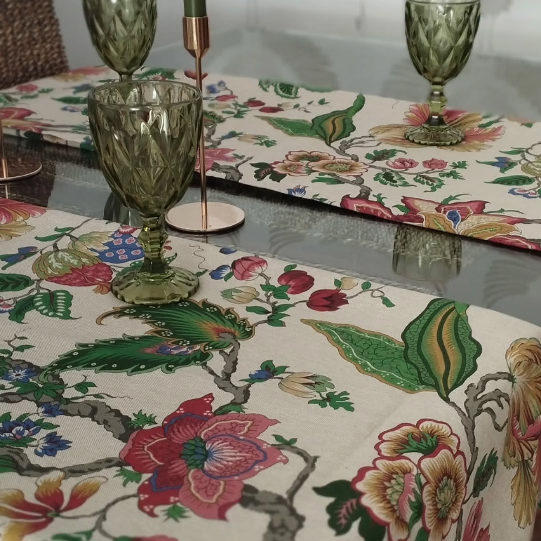 El algodón suave y las flores hindúes se unen en un mantel que llena tu mesa de color, calma y artesanía.